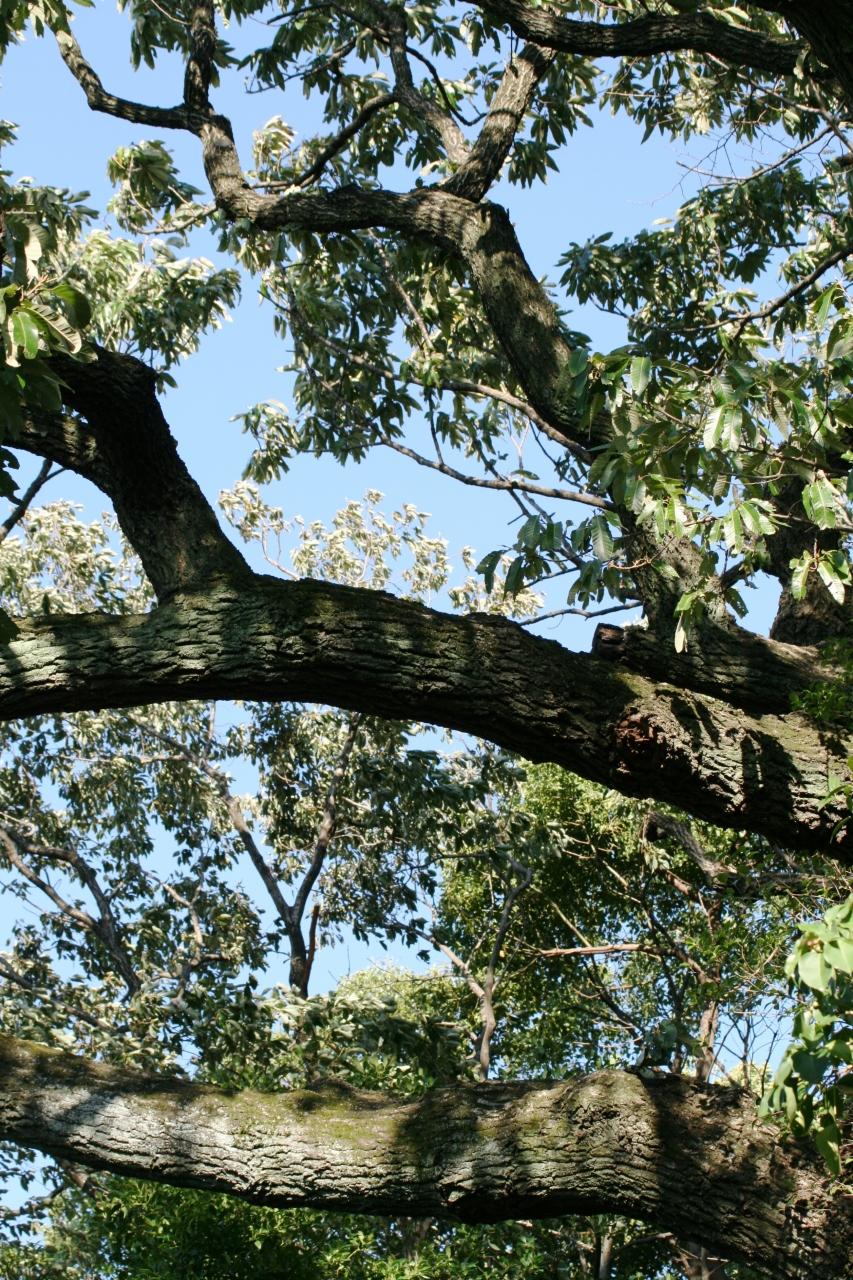 左端に見えるのが連理木のようです。テープが巻かれ、養生中のようでした。アベマキは、ブナ科コナラ属の落葉高木です。