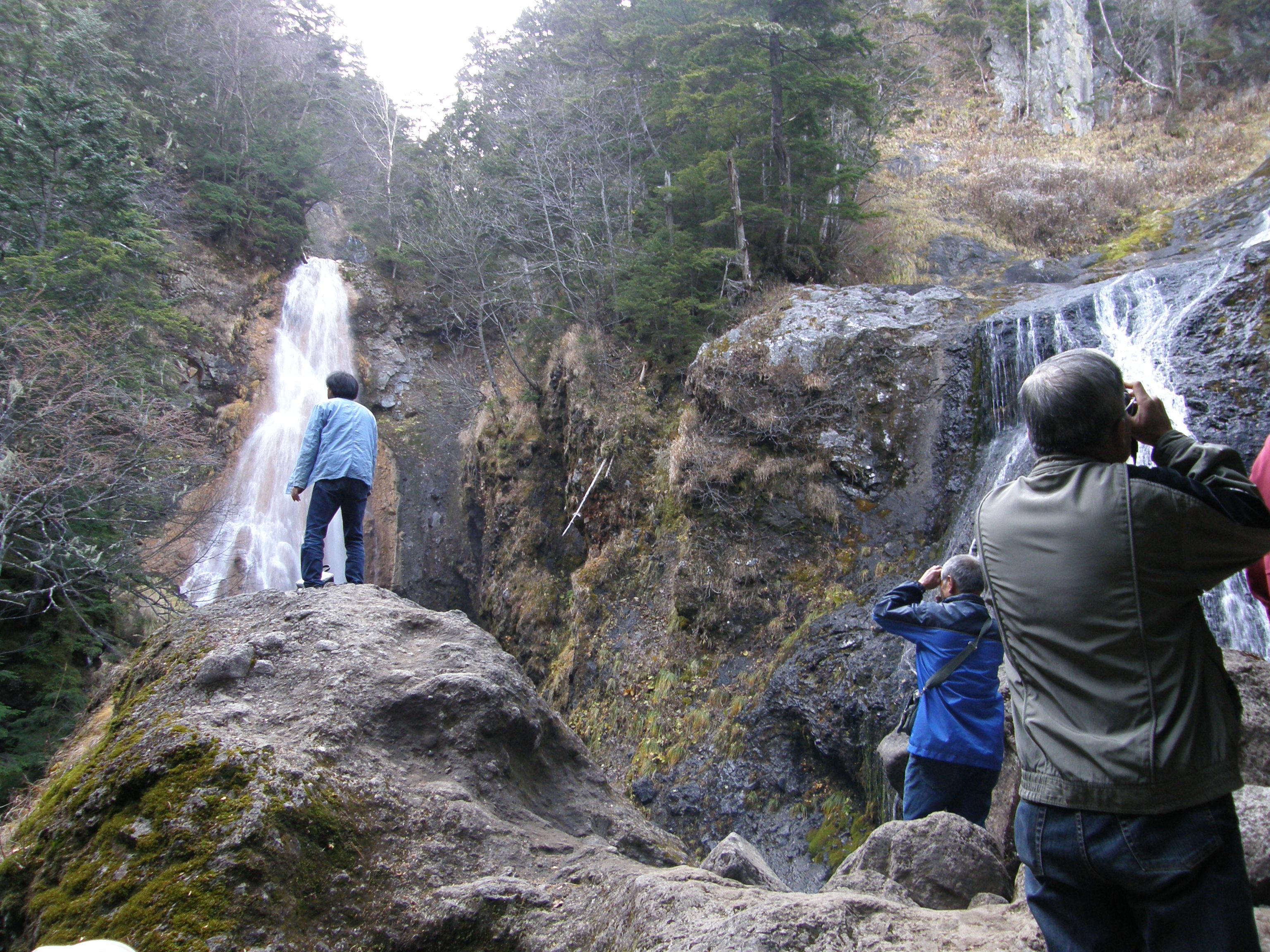次に、甲斐駒のふところにある尾白川渓谷に、神蛇滝を目指して行きます。