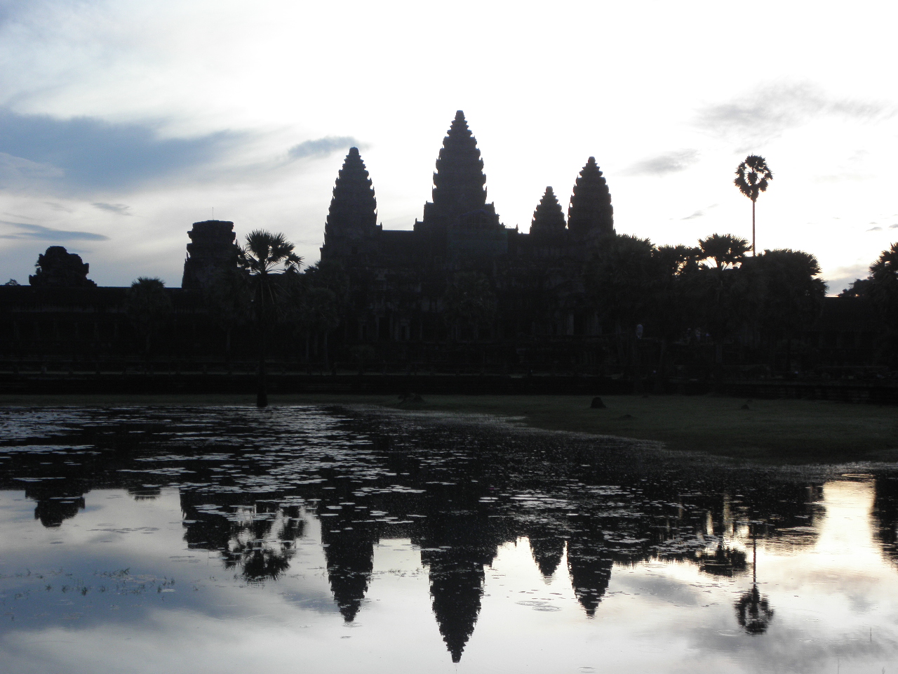 手前の池にうつったアンコールワット。