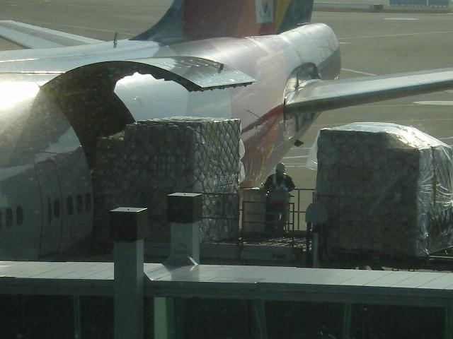 これは入れているところではなく、搬出しているところです。たぶん貨物便なんでしょう。