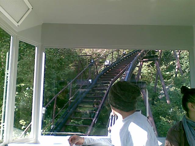 国旗近くのところから、モノレール乗り場を見下ろすと こんな感じです。結構 上にいますね。。。