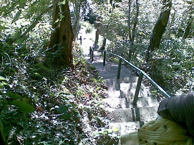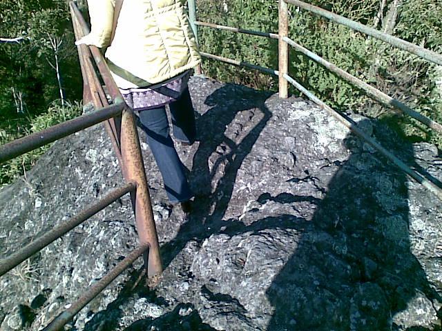 岩に手すりが付いてます。。。ちょっとこわいっっ