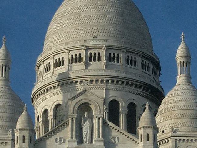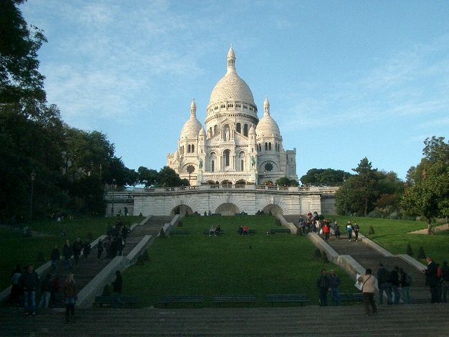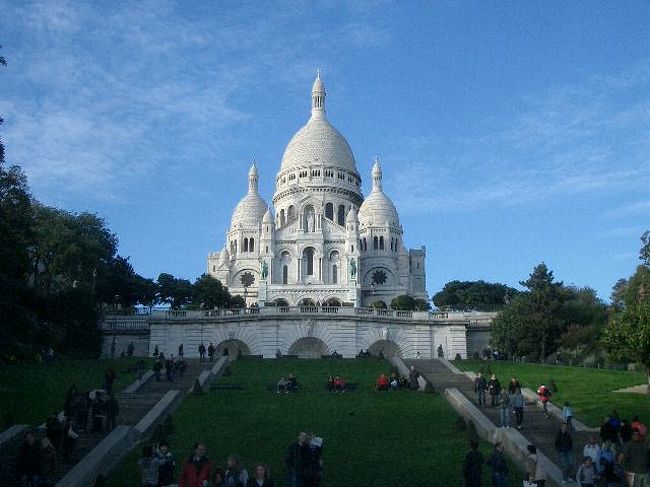 サクレ・クールは丘の上に立つ白い聖堂。青空に映えます。