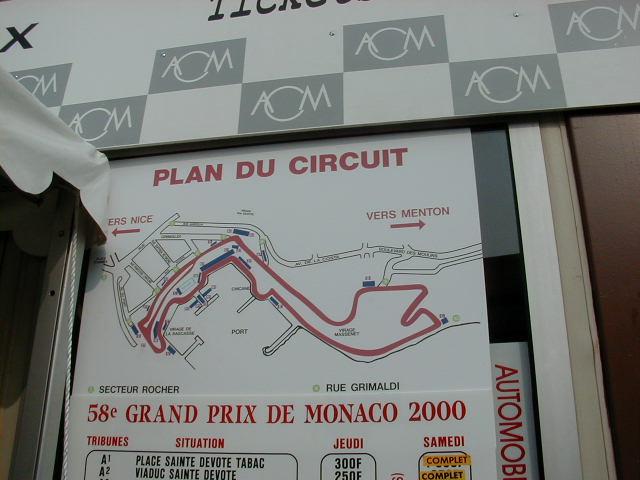 モナコグランプリのコースと指定席の座席配置が書かれています。