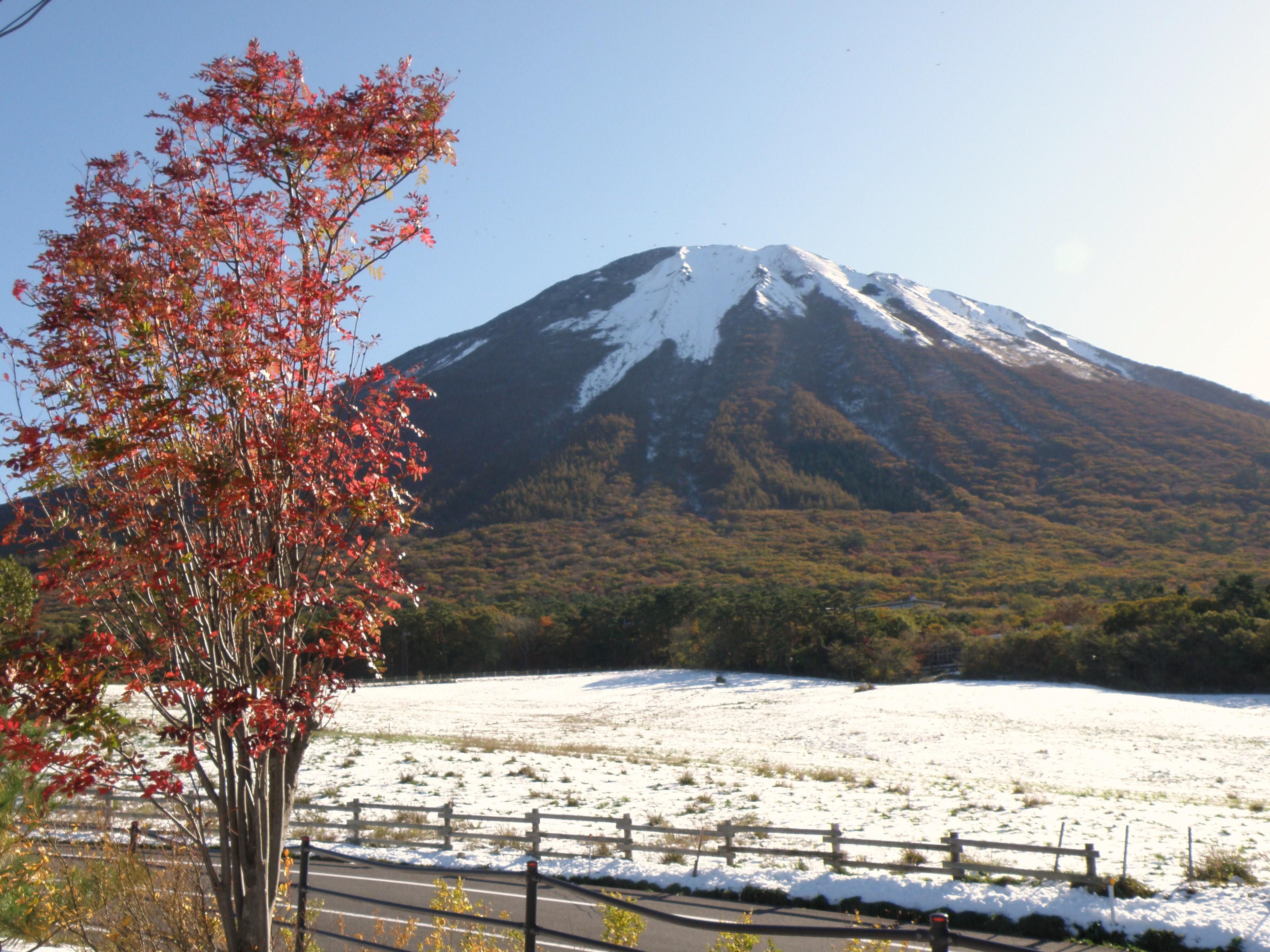 昨日の寒波で大山は雪景色。これは紅葉と雪景色という絶好の被写体が・・・期待に胸躍らせて枡水高原へ。