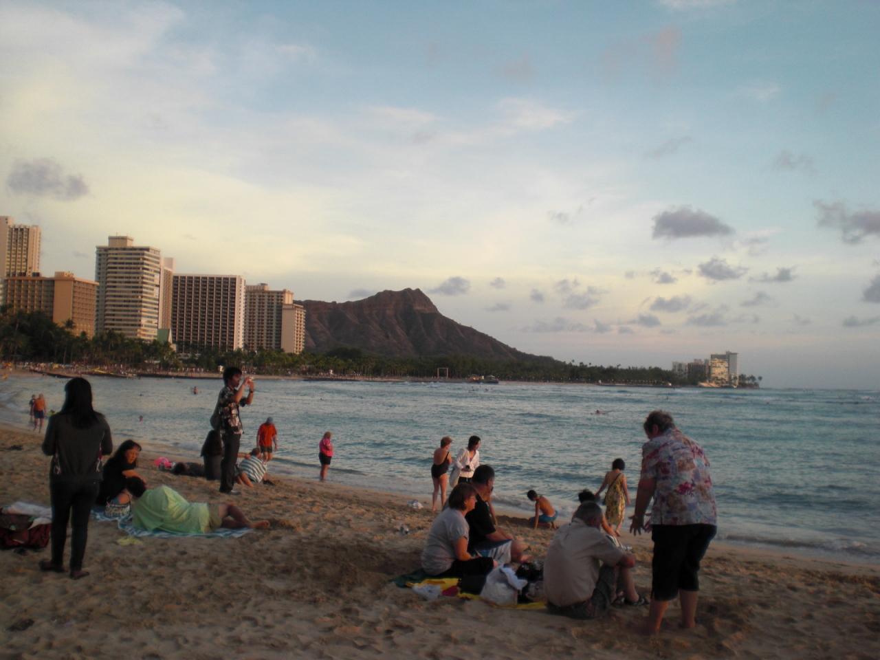 この日は早起きして、ワイキキビーチで日の出を見ました。