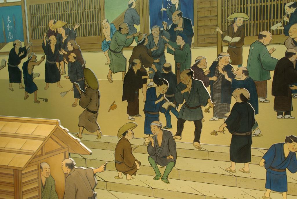 展示品は写真撮影OK。これは江戸時代に賑わった堂島の米相場の模型。