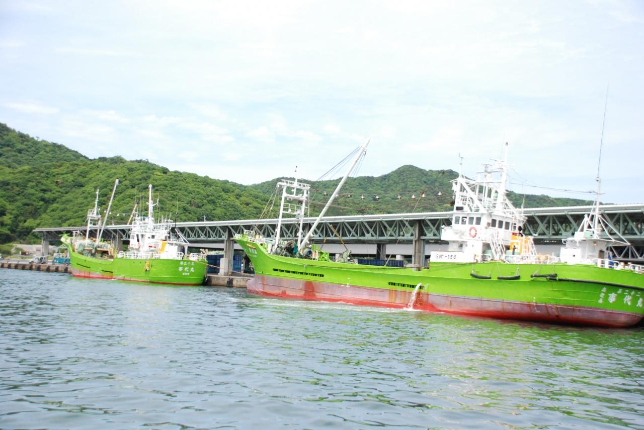 境漁港には仕事帰りの漁船もちらほら。