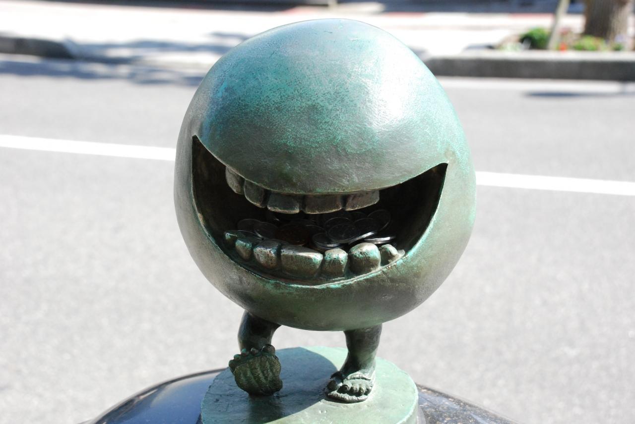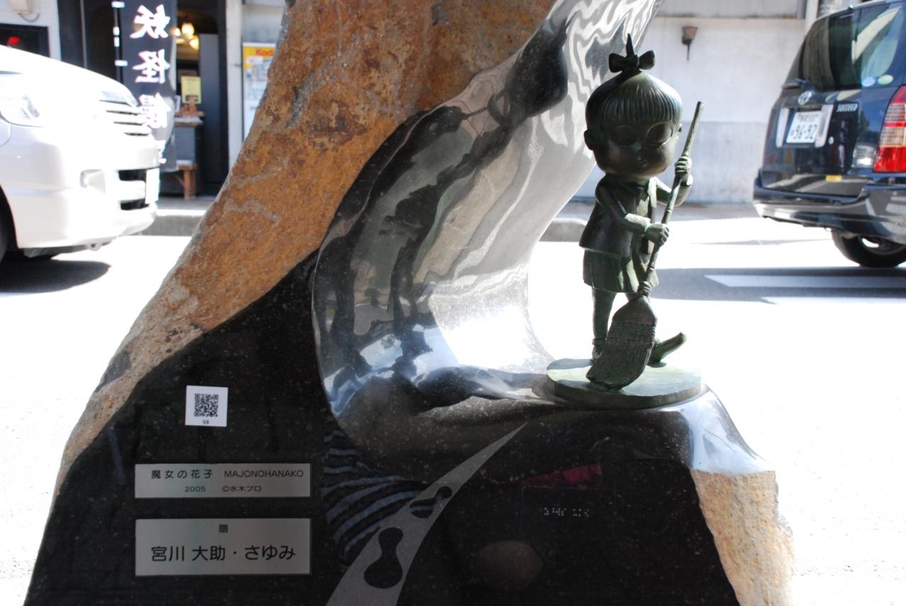 駅前からいっぱいある妖怪ブロンズ像を眺めながらしばらく歩いていくと、あまりにもとぼけた顔のぬりかべがいたので、パチリ。