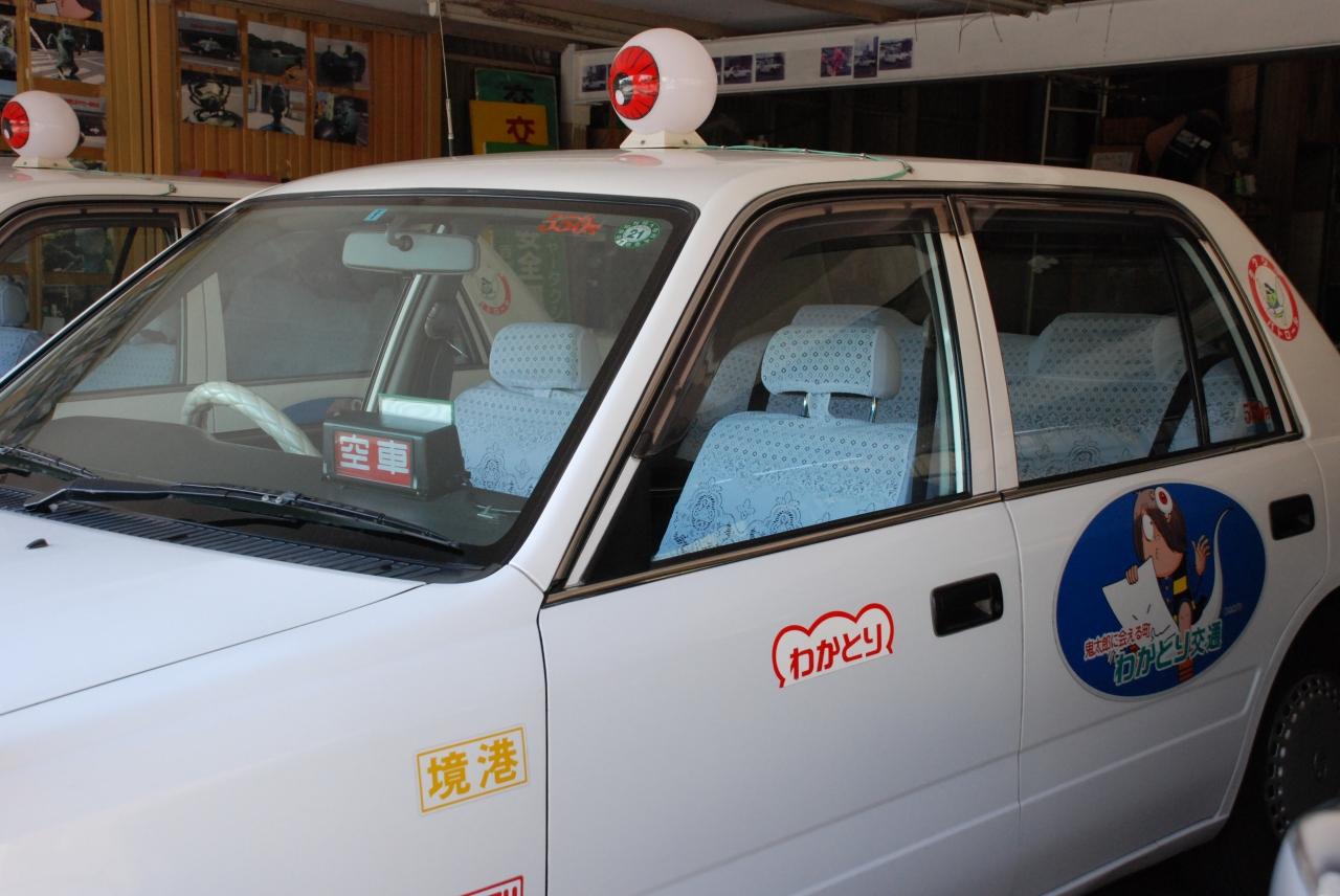 べとべとさんのブロンズ像の傍にある「わかとり交通」さんのタクシーの提灯はなんと目玉のおやじ!