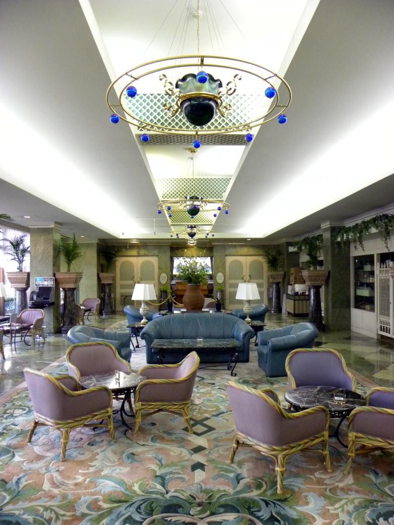 家族を起こさないように支度をして、早朝のロビーに降りてきます