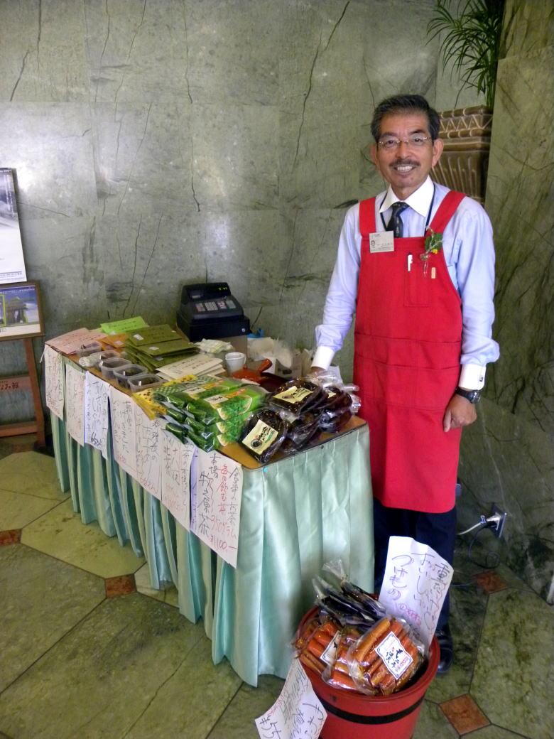 散歩から戻ると、ロビー隅には日本一小さな朝市