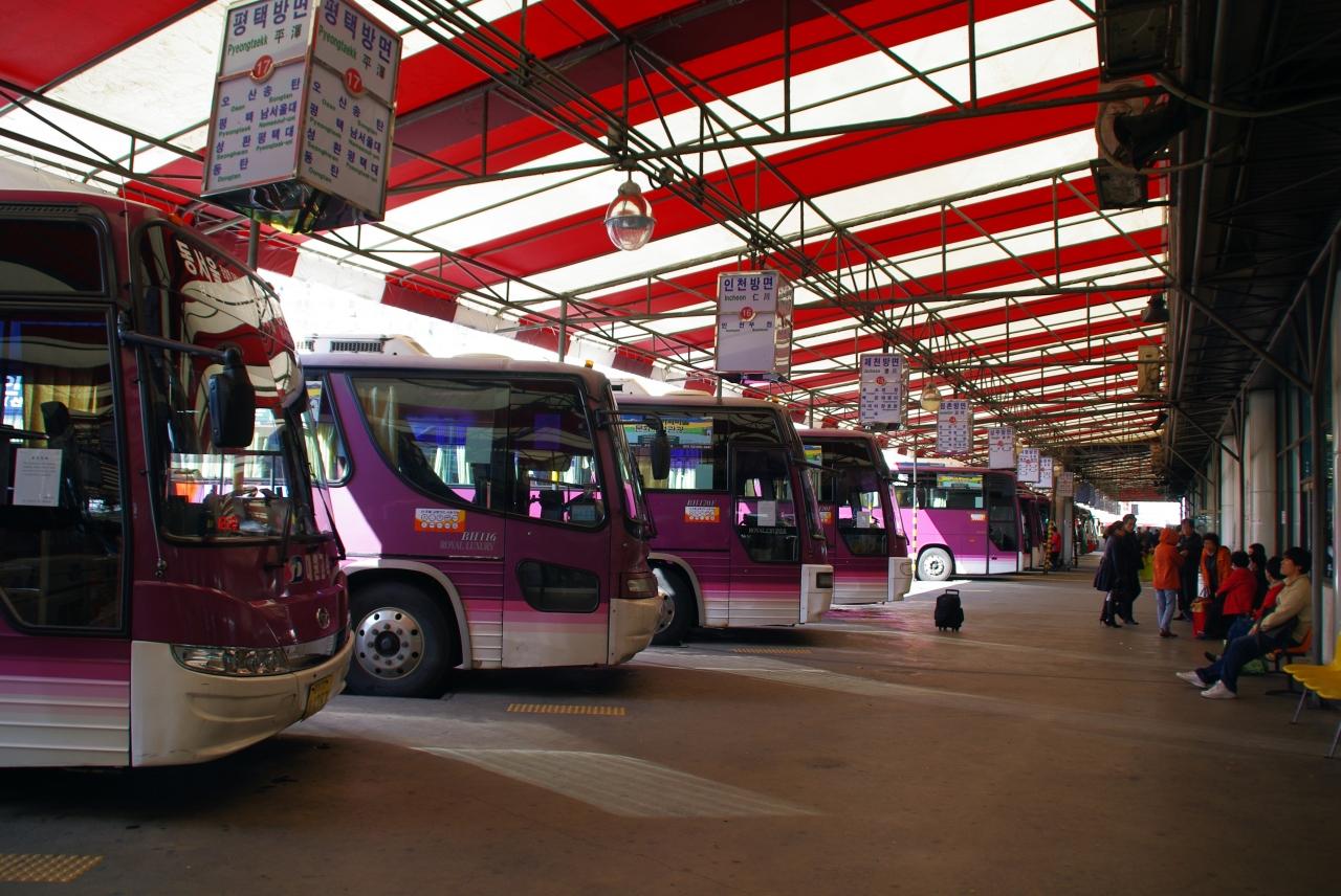 江辺駅でロッカーからキャリーバックを取り出し、道路1つ隔てた東ソウルバスターミナルに行きました。
