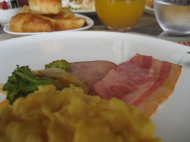 天井の高いレストランで青空を眺めながら、のんびりと朝食だなんてホント贅沢な時間だなぁ。
