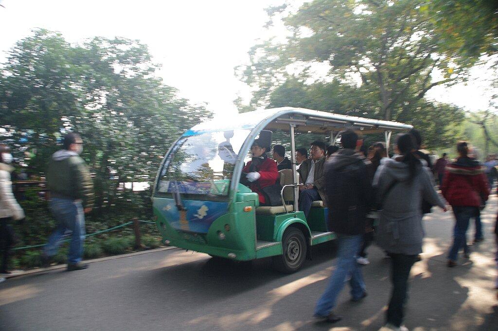 西湖周辺を循環している電気自動車の循環路線バス。