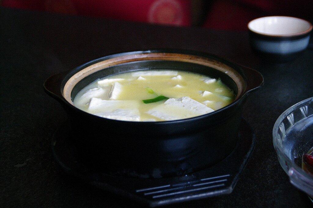 豆腐とネギの鍋。熱々です。さっぱりしていますが味は薄すぎません(昨夜みたいに)。80点。