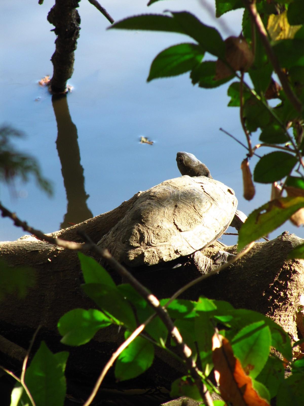 シラサギは対岸にいたのでデジタルズームの48倍に頼りましたが、カメさんは12倍ズームでも、実際の距離は1メートルと離れていなかったです。