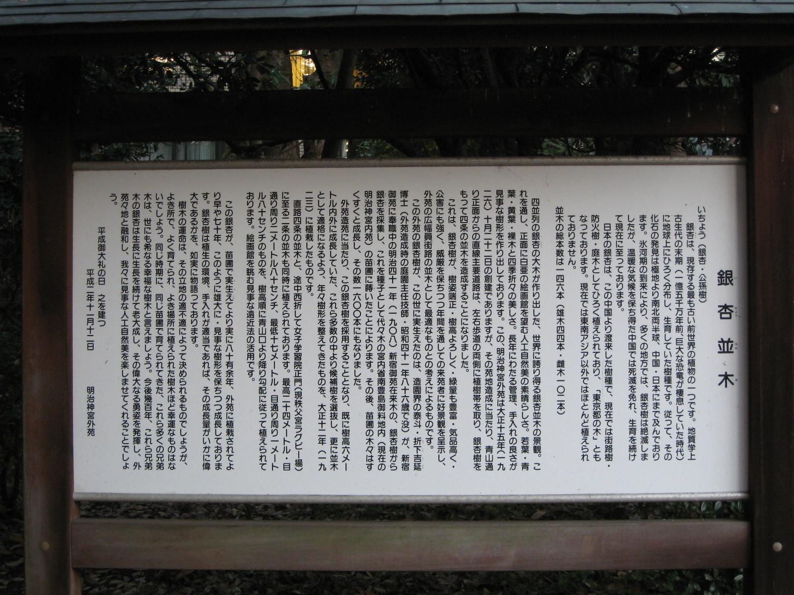 銀杏並木の由来が書かれていましたが、噛み砕くと銀杏並木のエリート中のエリートなんですね。