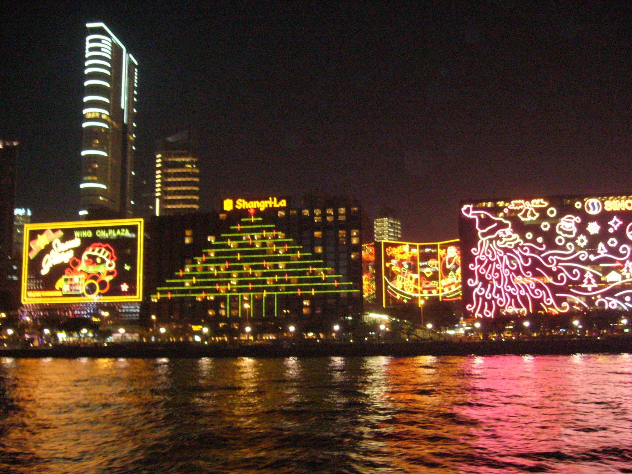 早速、地下鉄で香港島側に渡り、クリスマスイルミネーションで賑わう街中を歩いて、「ピークトラム」で「ビクトリアピーク」へ。