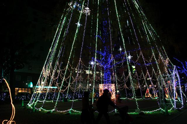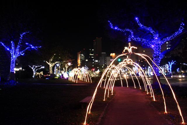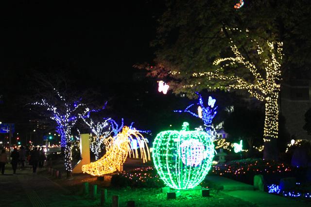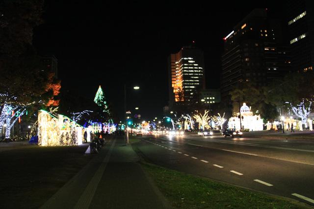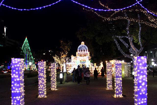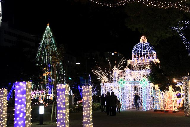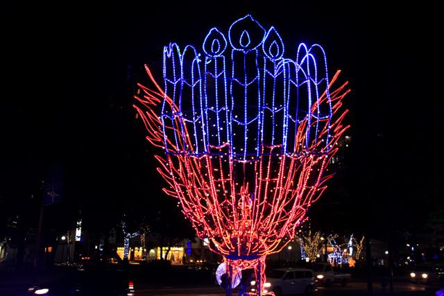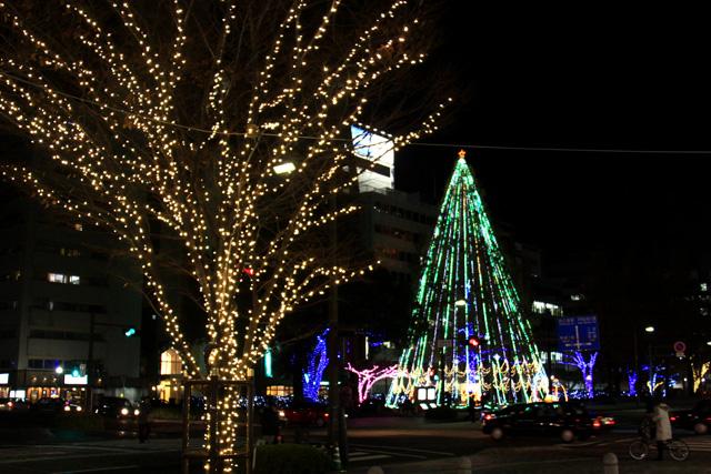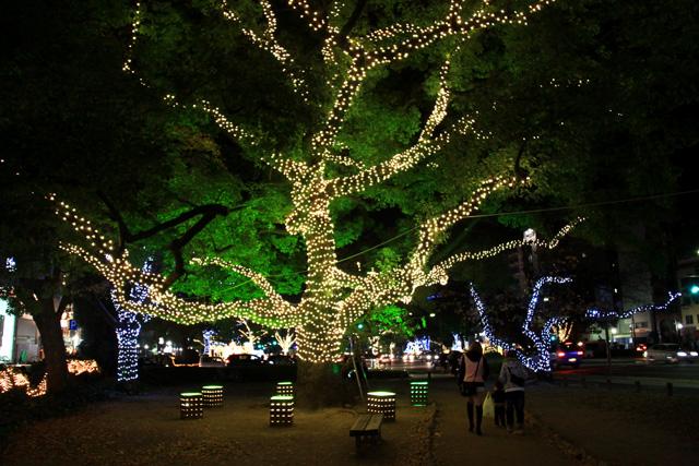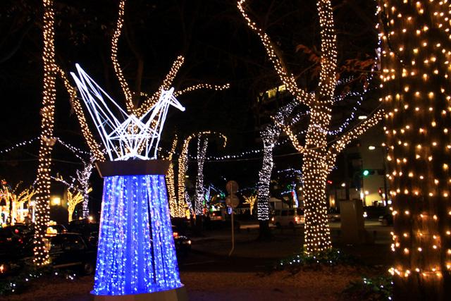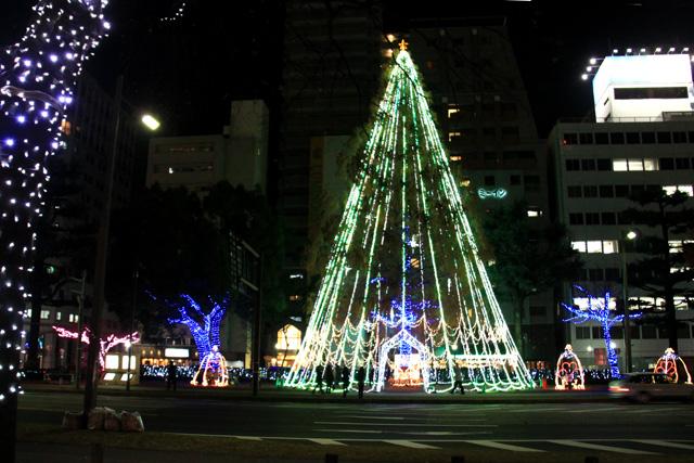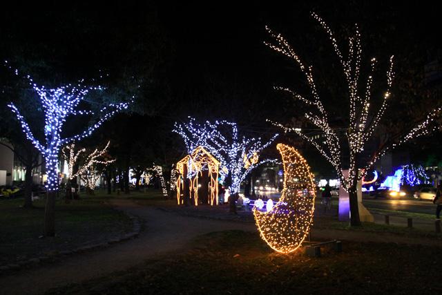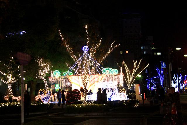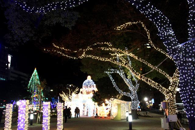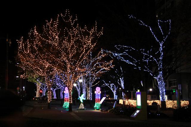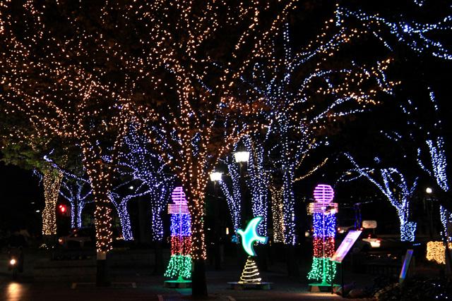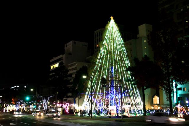 12月になると平和大通りの木々が夜になると美しい光を