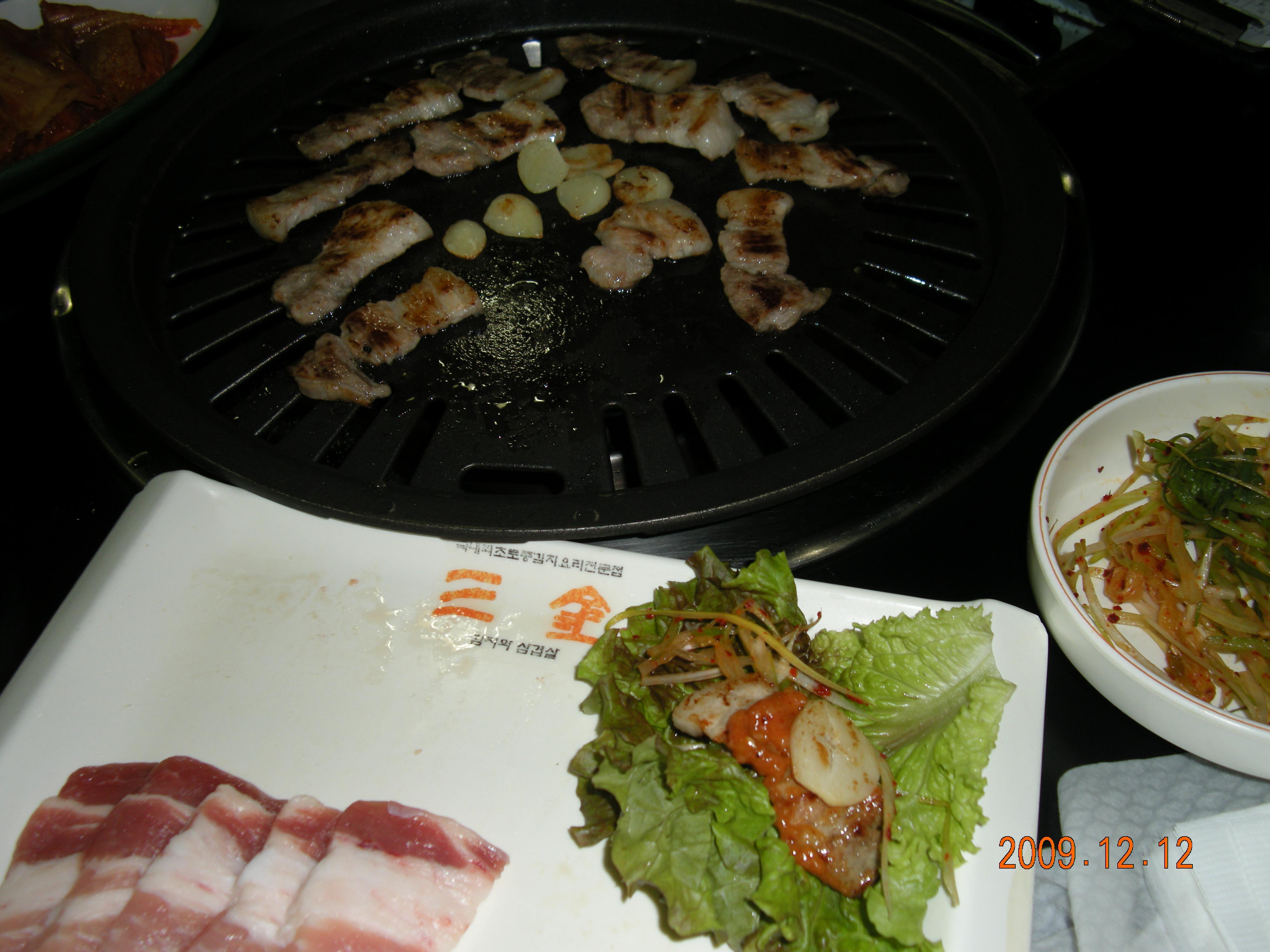 イメージは肉の塊を想像していたのだけれど、東京で普通に食べる豚肉の焼き肉でした。(*_*; -