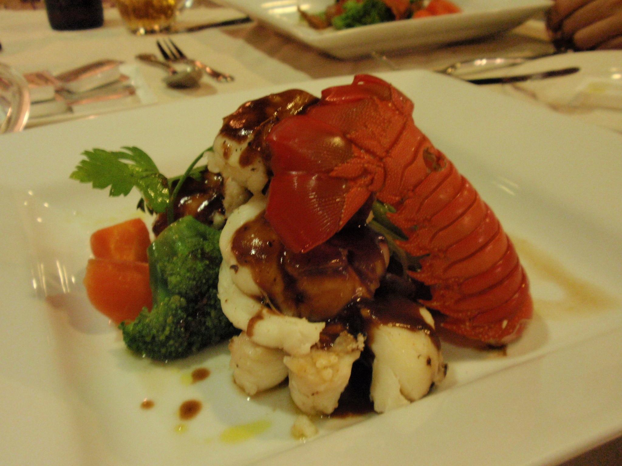 私用のロブスターの付いたちょっと贅沢なコース。90FJD。
