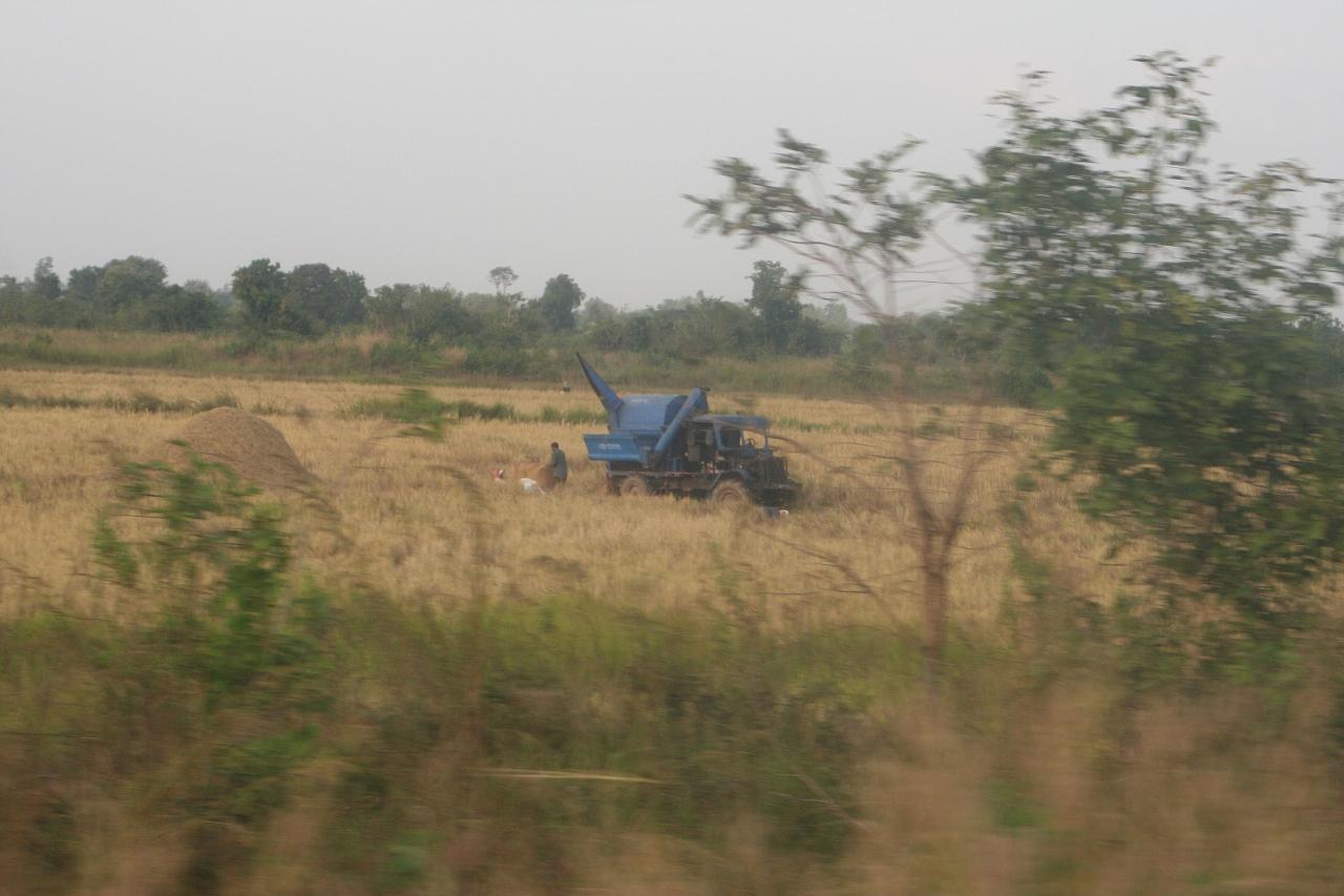 16時半にシェムリアップへ向けて出発。 田園風景は変わらないようだが、民家は一段と貧しそうだ。 しばらくして暗くなり、灯火の少ない中を進んで、夕食の休憩。 焼き飯を食べている間、あたりを子供やら犬、猫が走り回ってるようだが、薄暗くてよく分からない。