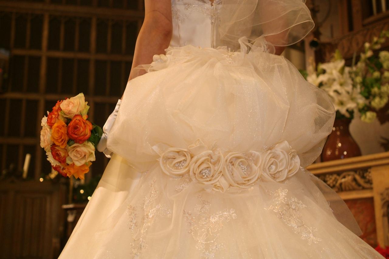 ドレス、借りようかな、とも思ったのですが、帰国後に東京で披露パーティーを行うので、作っちゃおうということになりました。