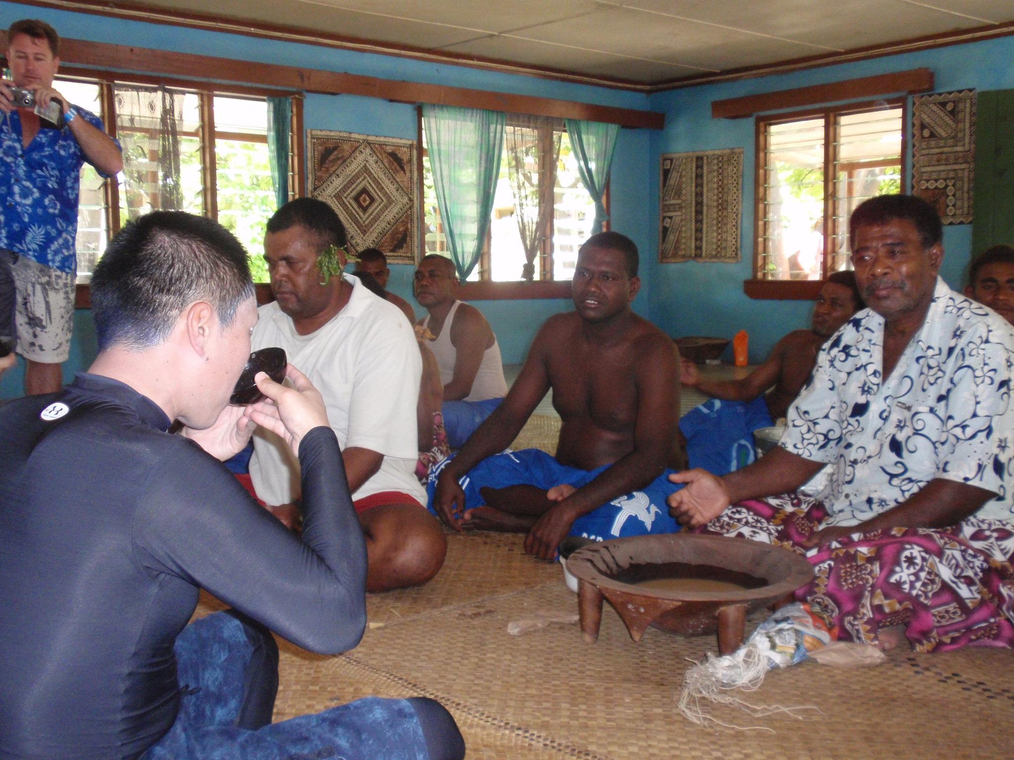 村ではおもてなしの儀式、『カバの儀式』の体験。