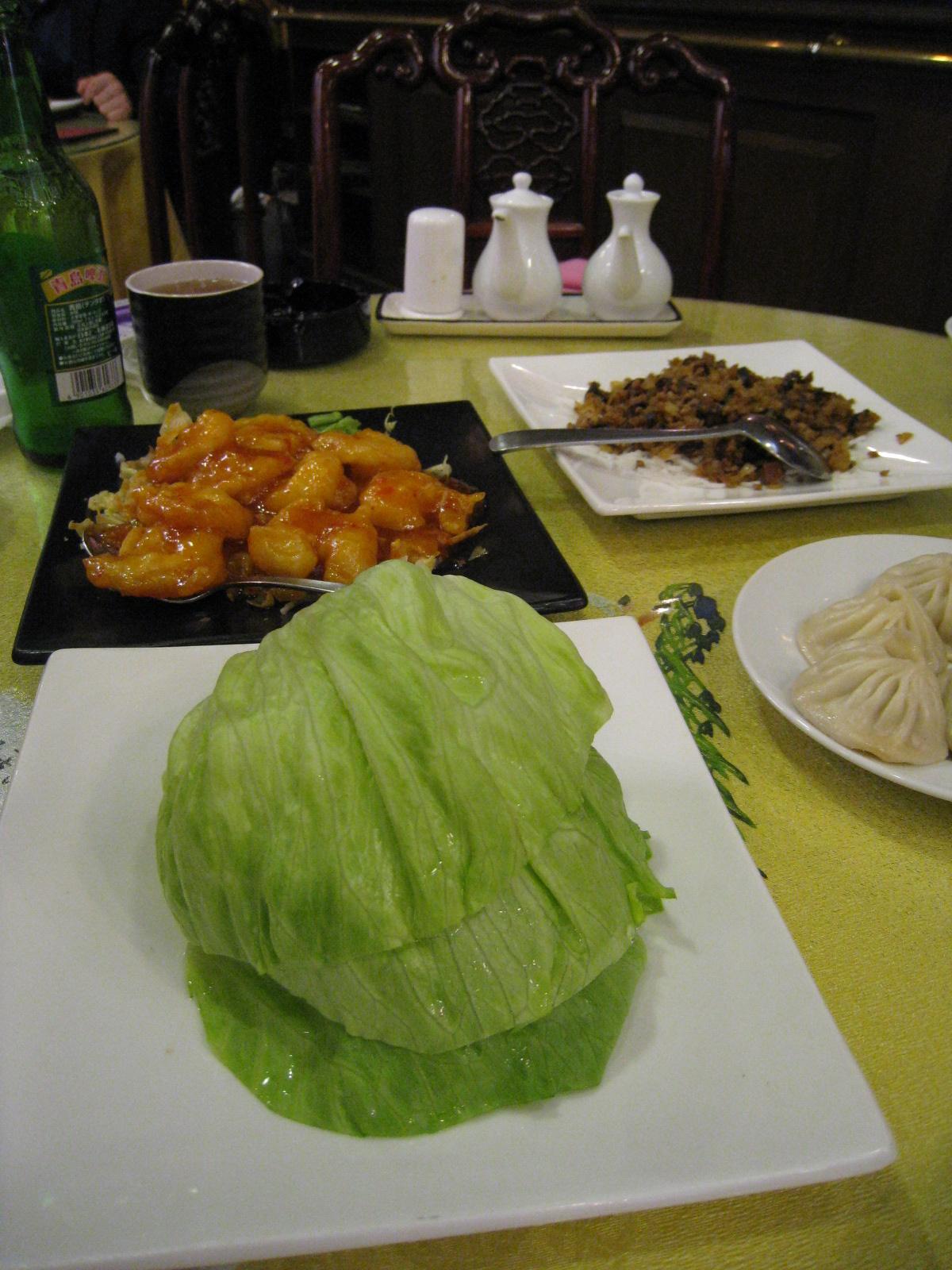北京ダック、海老チリ、ひき肉のレタス巻き、ショウロンポーふかひれスープ、炒飯、マンゴープりン