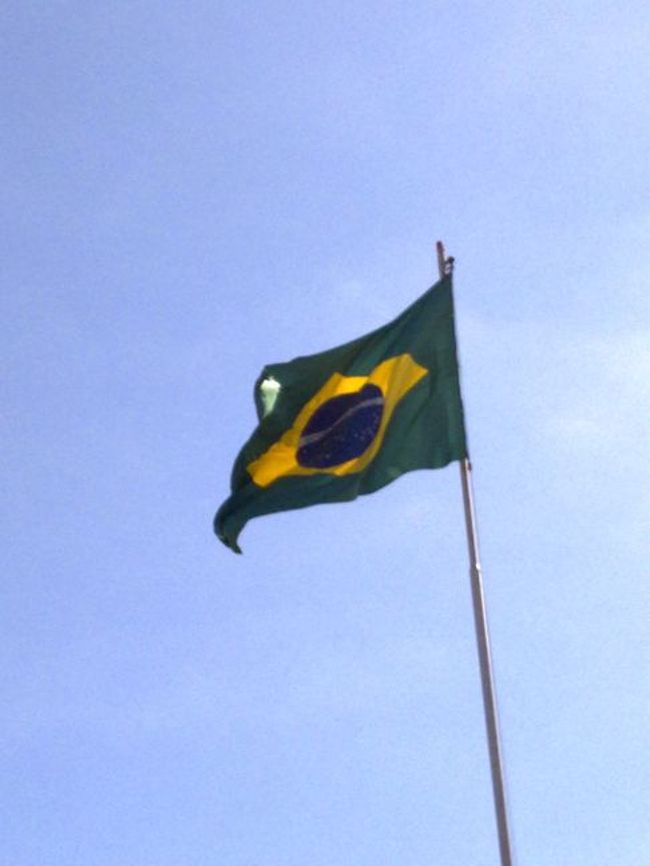 (写真はイグアスの空にはためく、軍駐屯地?のブラジル国旗)
