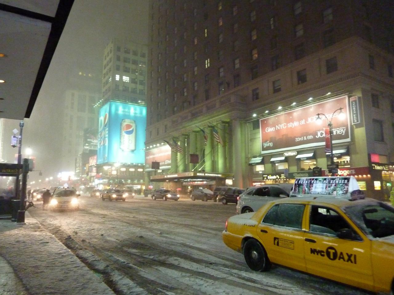 ホテル⇔ペン・ステーションは1本通りを挟んだ向かいにあるのだが、大雪で道路を渡るのも大変な状況に!