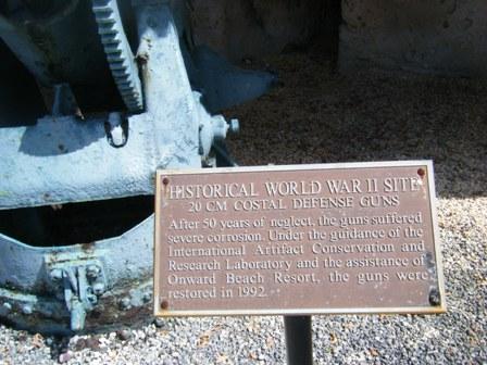 プールサイドに第二次世界大戦時の大砲が二つ展示されています。