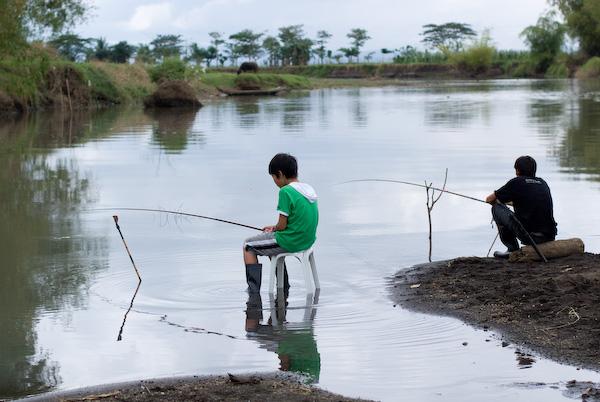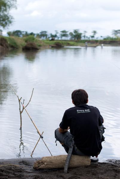 川の近く働いていた地元の人