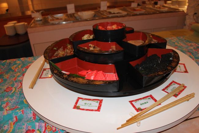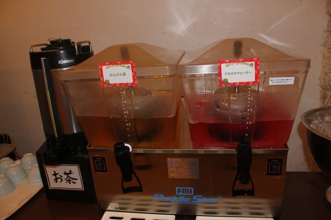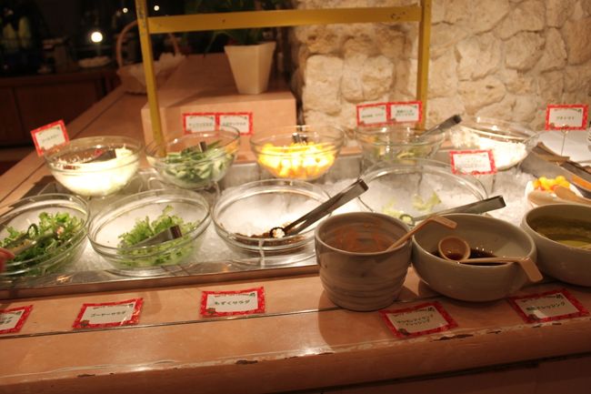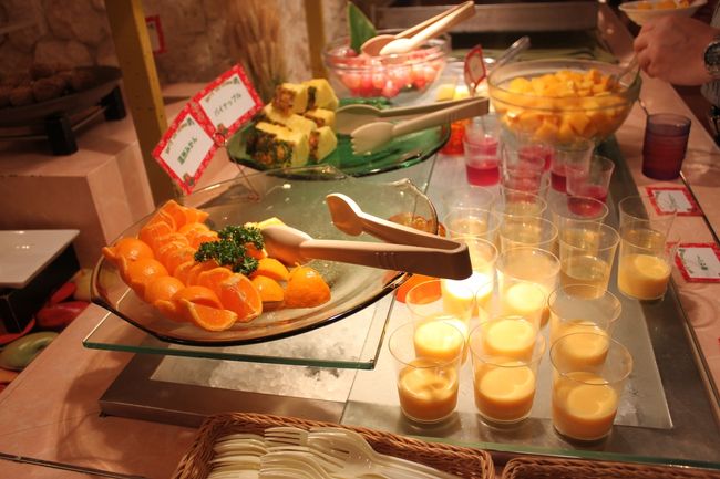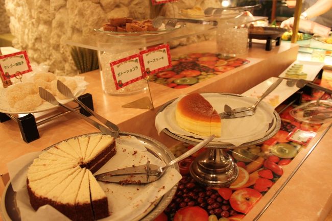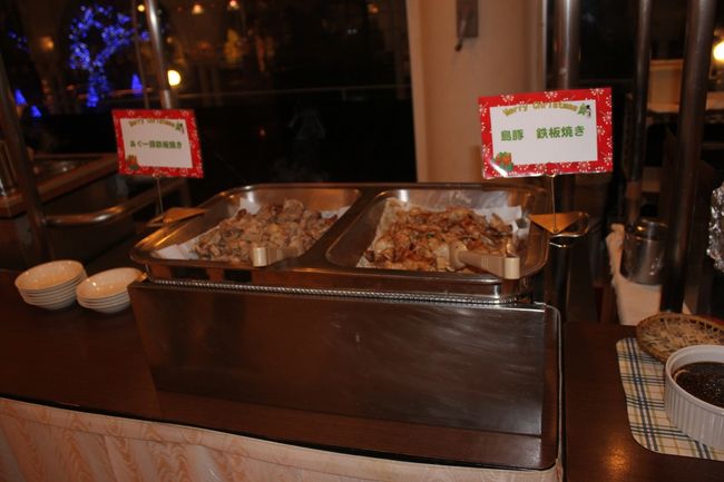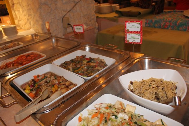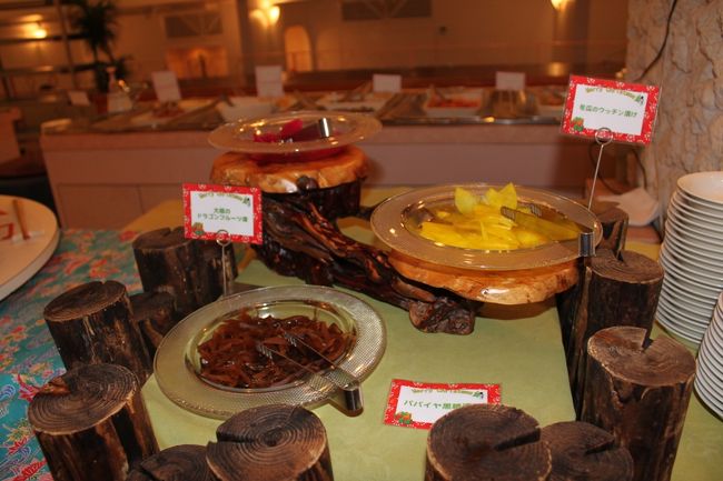 1日目はホテルマハイナウェルネスリゾートオキナワでのお泊りです。夜ごはんは1800円ほどプラスしてクリスマスディナーにするか、そのまま、バイキングにするかということでしたが、ちょっと洋食を食べる元気がなかったので、4人だけ別行動でバイキングをいただきました。