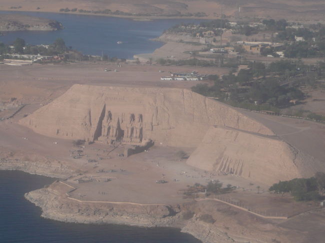着陸直前、飛び込んできたのは空から見るアブシンベル神殿。機体左側の窓側に席を取っているとこんな風景に出会えます。