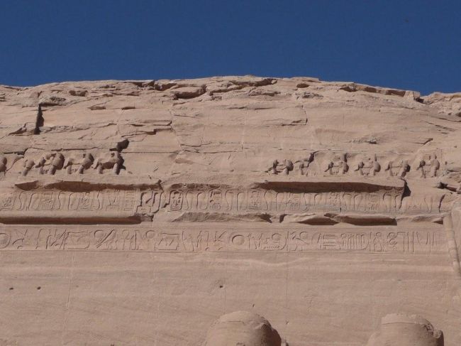 この神殿を建てたのはファラオの中のファラオと呼ばれたラムセス2世で、紀元前1250年頃に作られたらしい。パワーショベルも無い古代にどんな労力を費やしてこんな神殿を作ったのかと思うと、気が遠くなる。 -