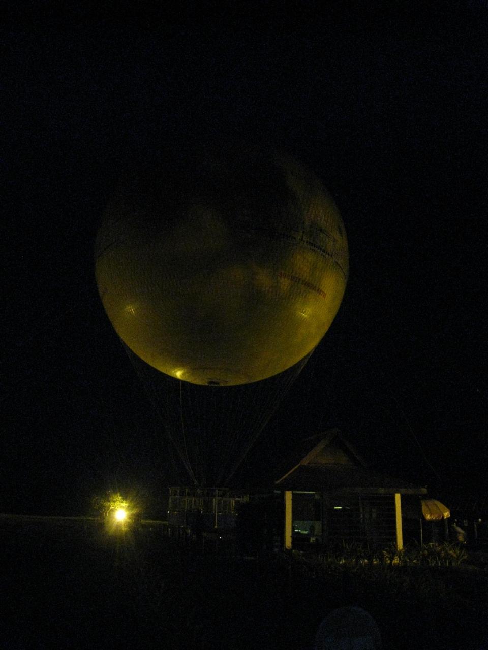 月が輝く中浮かび上がるバルーン。