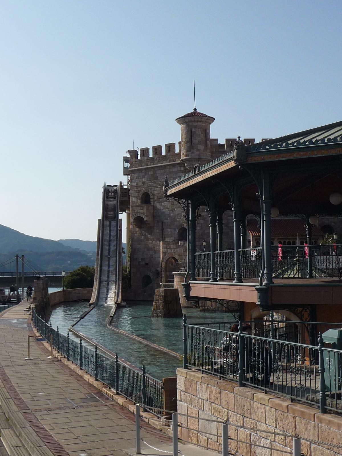 あの古城は「ハイダイブ」というウォーターライドのアトラクションになっているんですね〜。
