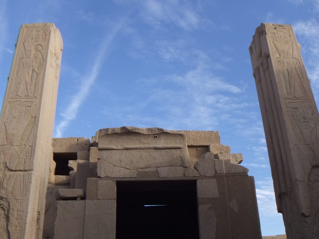 ハトシェプスト女王のオベリスクから更に進むと、前方にこのような2つの柱があって、正面に至聖所があります。