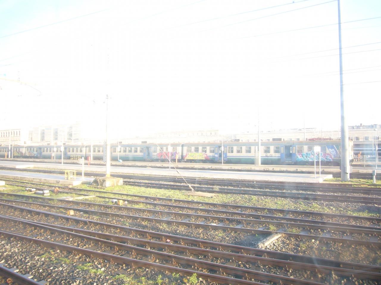 窓ガラスに,Trenitaliaのロゴを発見。