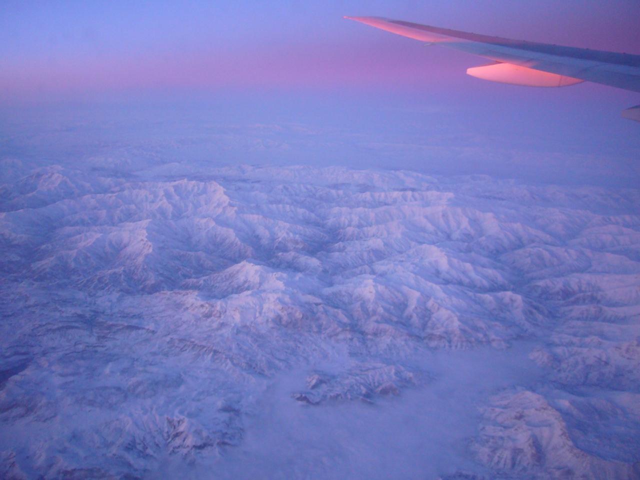 真下には,凍てついた雪山が連なって。
