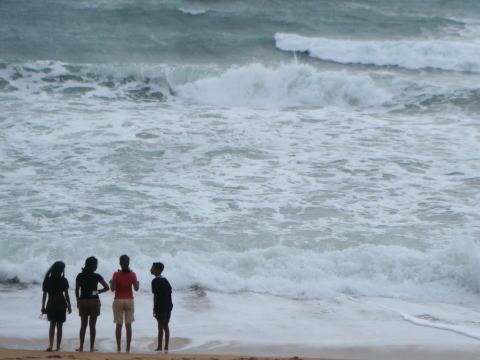 浜辺で波と遊ぶ人たちが結構いました。