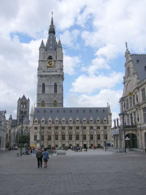 ゲントの街並み。鐘楼(14世紀に建築。高さ91?)。