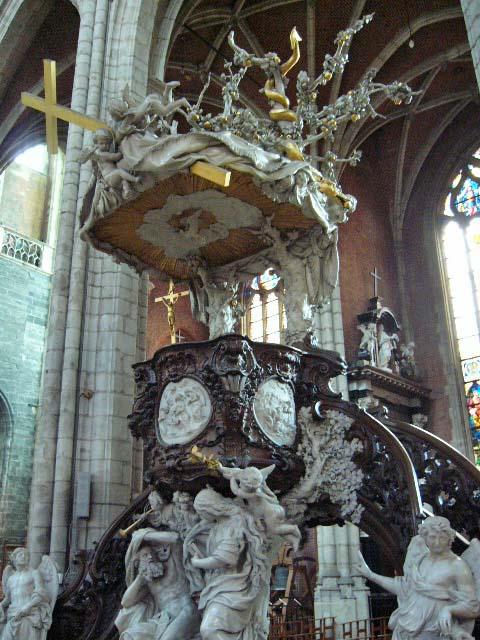 聖バーフ大聖堂内。ヤン・ファン・エイク作「神秘の子羊の礼拝」(1432年)のレプリカ。本物は別室にあり、撮影禁止でした。