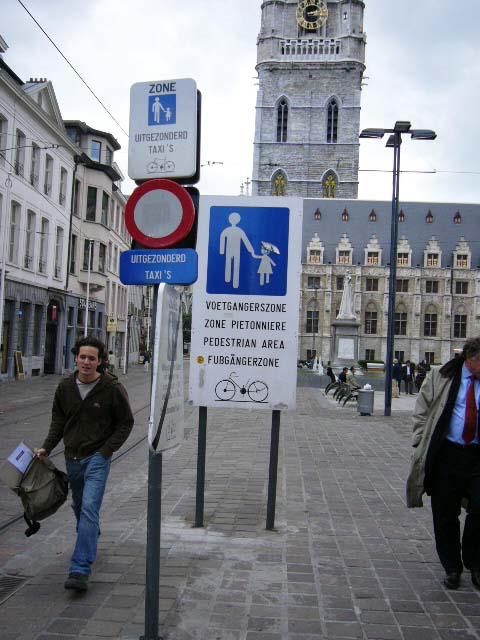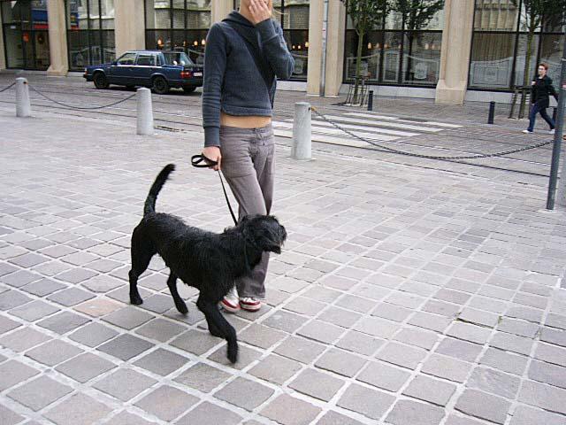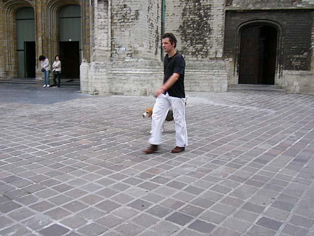 ゲントの街並み。お嬢さん(顔が切れてしまった)がワンちゃんと散歩。