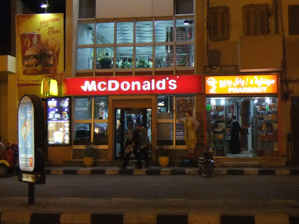 自由行動を開始します。近くに見えているマクドナルドへ行きます。アラブ限定のマックアラビアを食べるためです(実は後日アスワンで自由行動があるので、その時マクドナルドに行けたのですが)。外観は普通です。