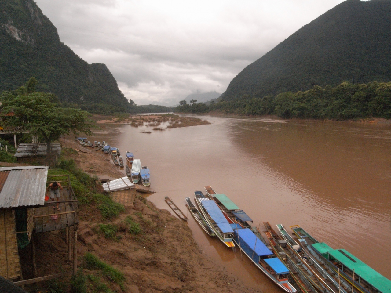 ノーンキャウ〜ムアンゴイの船。乗れるだけ乗る、というより、載せられるだけ載せるという表現が正しいかもしれません。もちろん救命胴衣などというものはなく、増水した川をこの状態で2時間移動するのはなかなかスリリング。ついでに、身動きもあまりできないので、かなり疲れます。