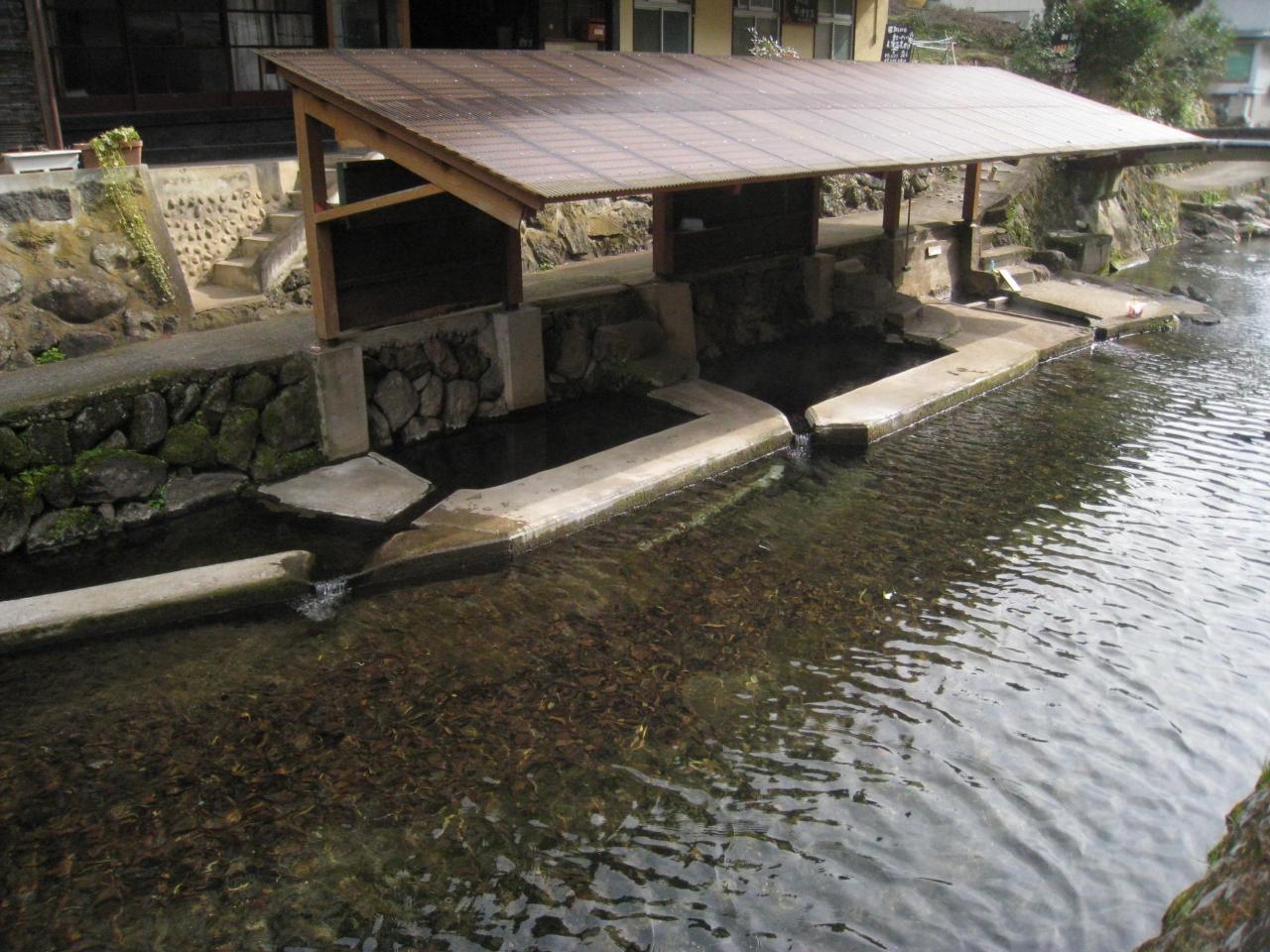 ここは川底から温泉が沸くようで、早朝の湯気が立ち込める風景は情緒豊かで有名です。この丸見え浴場は地元の人が米をといだり、野菜を洗うのにも使われています。その隣で入るにはちょっと度胸が必要ですね。 -