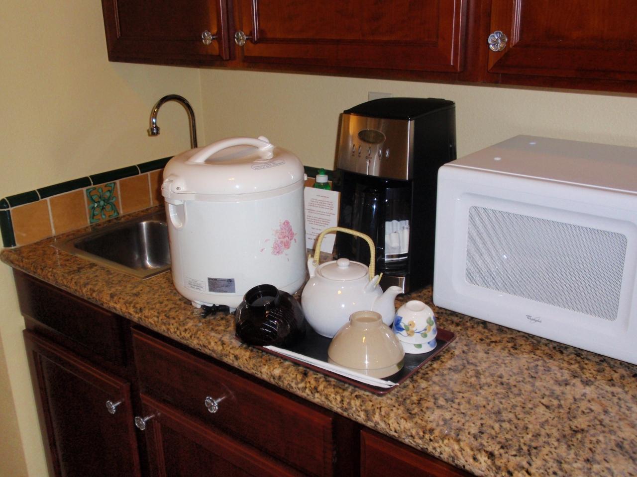 スタジオルームにも一応ミニキッチンが付いているので、自炊グッズも揃ってました。